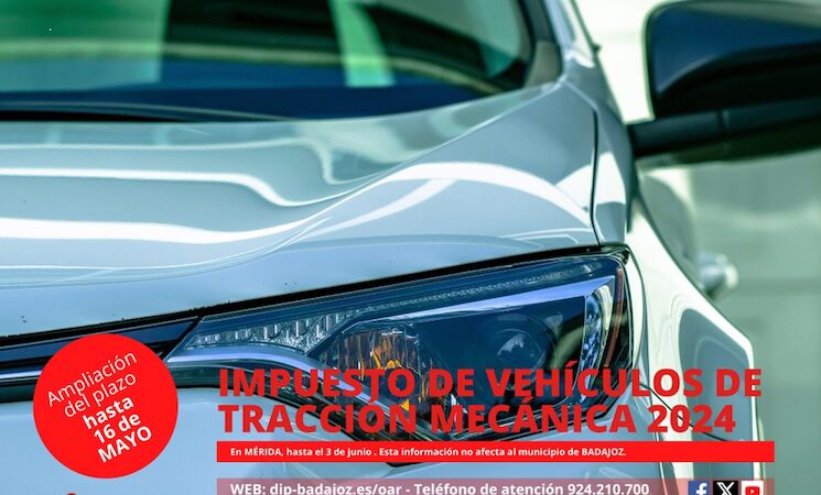 El periodo de pago en voluntaria del Impuesto sobre Vehículos de Tracción Mecánica finaliza este jueves, 16 de mayo, para toda la provincia de Badajoz, excepto en la ciudad de Mérida, que concluye el próximo día 3 de junio.