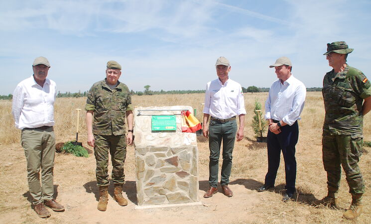 Cabe destacar que en el caso concreto de la Base General Menacho, para la reforestación de las 50 hectáreas se han elegido especies adaptadas al hábitat como son la encina, el pino piñonero, el fresno y un tipo de alcornoque resistente a la seca y que se está probando en esta plantación.