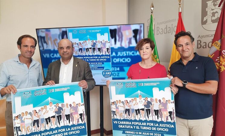 Seller y Ponce han participado, junto al concejal de Deportes del Ayuntamiento de Badajoz, Juan Parejo, y el director técnico de la prueba y representante de Pulsaciones.net, David Pozas, en la presentación de la VII Carrera Popular por la Justicia Gratuita y el Turno de Oficio, que se celebra el próximo viernes 12 de julio a partir de las 21,00 horas en el entorno del parque del río.