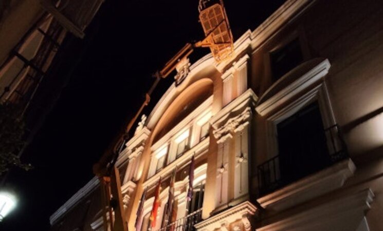 La intervención ha consistido en la sustitución del sistema de alumbrado arquitectónico existente por un moderno sistema de iluminación LED, que "no solo reduce el consumo energético, sino que destaca con precisión cada detalle de la histórica fachada".