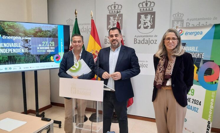 El concejal delegado de Eficiencia Energética del Ayuntamiento de Badajoz, José Luis González, junto al presidente del Clúster de la Energía de Extremadura, Vicente Sánchez, y la directora general de Industria, Energía y Minas de la Junta de Extremadura, Raquel Pastor, han presentado esta séptima edición, cuya ponencia inaugural la ofrecerá el científico Fernando Valladares, doctor en Biología, investigador del CSIC, profesor asociado de la Universidad Rey Juan Carlos de Madrid y uno de los mayores especialistas en cambio climático.