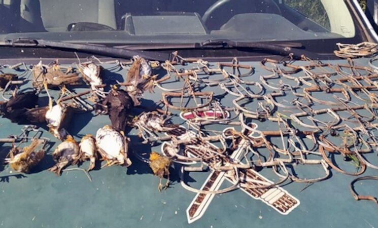 Así pues, una vez identificados los dos vecinos de Monterrubio, los agentes realizaron una inspección de la zona, en la que descubrieron un total 134 trampas, colocadas y dispuestas para su uso y con las que acababan de capturar además de un lirón, 21 aves de distinta especie, entre las que se encontraban como diez zorzales, tres mirlos, siete petirrojos y una curruca cabecinegra.