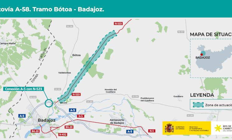 El Ministerio de Transportes y Movilidad Sostenible ha iniciado este jueves, tras su aprobación provisional y su publicación en el BOE, el proceso de información pública del proyecto de trazado de la autovía A-58 entre Bótoa-Badajoz.