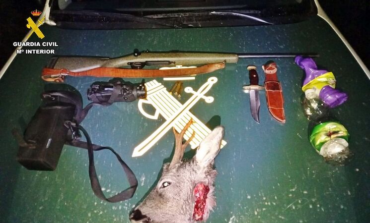 Además del trofeo abatido, en la actuación se les intervino un rifle, visor térmico, así como otros elementos utilizados para la caza, según relata la Guardia Civil en una nota de prensa.