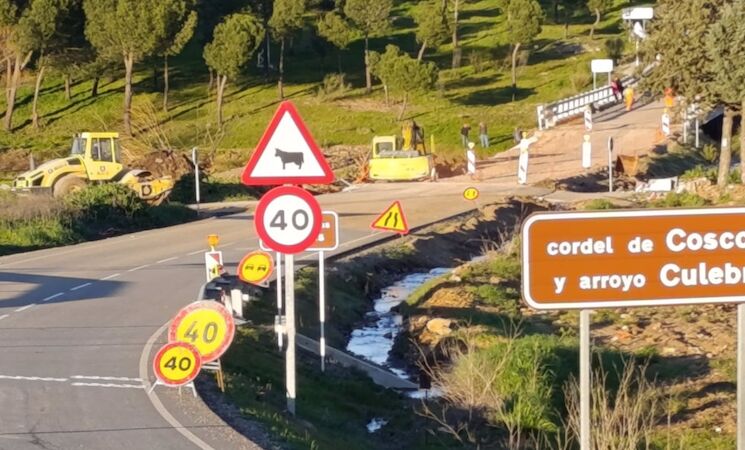 El corte del tráfico, que se produjo el pasado 18 de marzo debido a los daños en el firme y los elementos de protección de la estructura sobre el arroyo Culebras, ha sido solventado con la retirada de los materiales desprendidos y la habilitación de un desvío con zahorras.