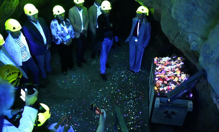 Se trata de una circunstancia que ha destacado la vicepresidenta, para quien "esta mina es única". "Aquí se descubrió por primera vez en el planeta la calderonita. Aquí vemos formaciones de hace 300 millones de años y cuando la luz ultravioleta toca los filones, la roca se convierte en magia, en un espectáculo de colores, rojo, verde, amarillo que nos recuerda que la naturaleza es la mejor artista", ha aseverado.