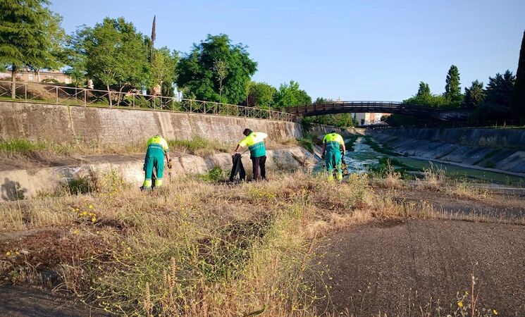 Las labores de limpieza en los arroyos Rivillas y Calamón a su paso por Badajoz han comenzado esta semana con la recogida manual y limpieza de los cauces, para posteriormente proceder al desbroce mecánico y a una fumigación específica