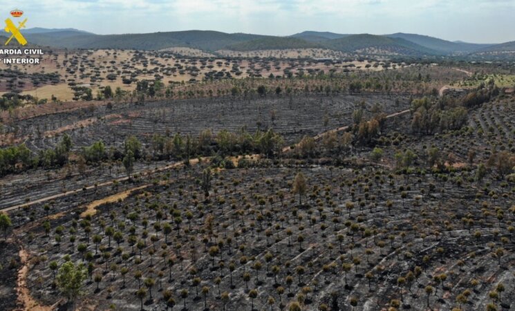 Así pues, agentes de la Guardia Civil investigaban desde el 1 de junio el origen de un incendio que afectó a 366 hectáreas de terreno forestal, en el paraje conocido por 'Los Panerones', ubicado en el término municipal de Don Benito que afectó a La Sierra de Manchita, y que también calcinó una veintena de colmenas que se hallaban asentadas en la finca y afectó a la población apícola de otras setenta.