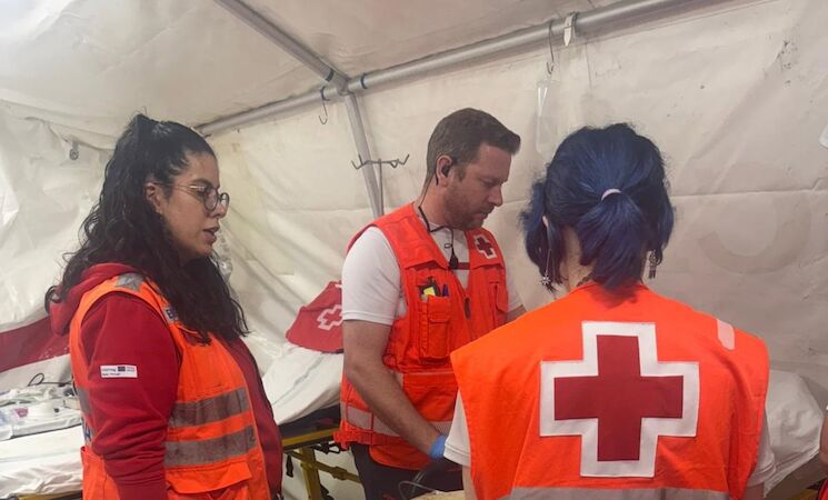 Para esta jornada, según indica Cruz Roja en nota de prensa, la institución ha movilizado un total de 21 efectivos, junto con tres ambulancias y un vehículo de intervención rápida, además del puesto médico instalado en el recinto de casetas.