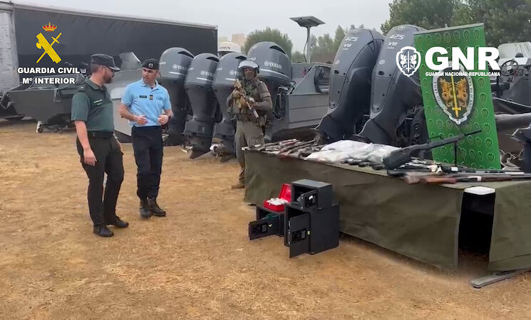 Durante la operación se intervinieron 18 embarcaciones de alta velocidad valoradas en 8 millones de euros, 40 motores de alta potencia, 12 vehículos y 9 armas de fuego.