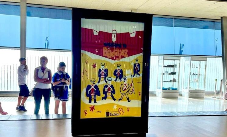 La imagen de Badajoz está visible hasta el 13 de septiembre en distintos soportes distribuidos en ambos aeropuertos, como vinilos en las puertas del hall de llegadas regionales; mupis exteriores a doble cara en varias localizaciones; luminosos en las puertas del hall de llegadas de pasajeros; mupis entrecintas en las zonas de recogida de equipajes, y un circuito de pantallas digitales en las que se exhibirá un spot de 10 segundos de duración.