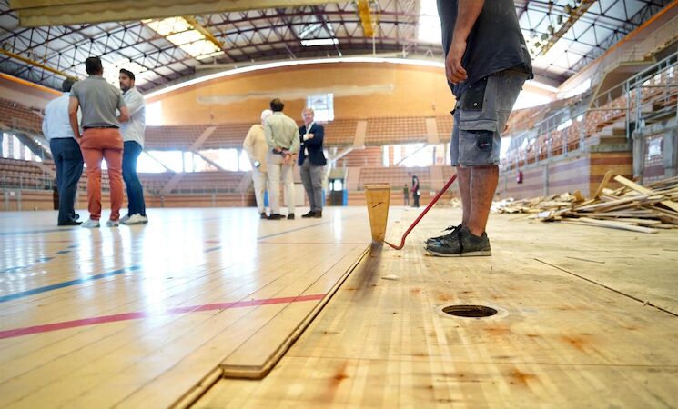 La obra de sustitución de la pista central del pabellón de La Granadilla de Badajoz ha comenzado este pasado lunes, en el marco de una actuación subvencionada por la Consejería de Cultura, Turismo, Jóvenes y Deporte de la Junta de Extremadura por un importe de 253.448,09 euros.