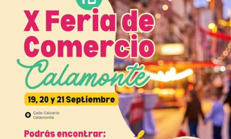 La X Feria del Comercio de la localidad pacense de Calamonte se desarrollará este fin de semana, del 19 al 21 de septiembre, con ofertas y descuentos, sorteos y promociones, restauración, conciertos y animación o ludoteca infantil con el objetivo de consolidar el sector comercial y de servicios del municipio y su comarca.