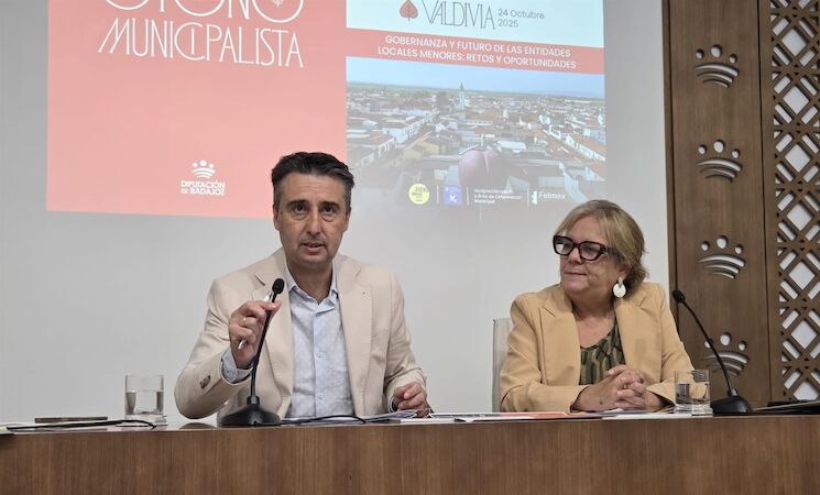 Así lo ha detallado el vicepresidente primero de la Diputación de Badajoz y diputado de Cooperación Municipal, Juan María Delfa, acompañado por la directora de este departamento, Jana Cintas, en la presentación del 'Otoño Municipalista' 2025, concebido como un foro de debate en el que los asistentes podrán intercambiar conocimientos y abordar retos presentes y futuros.