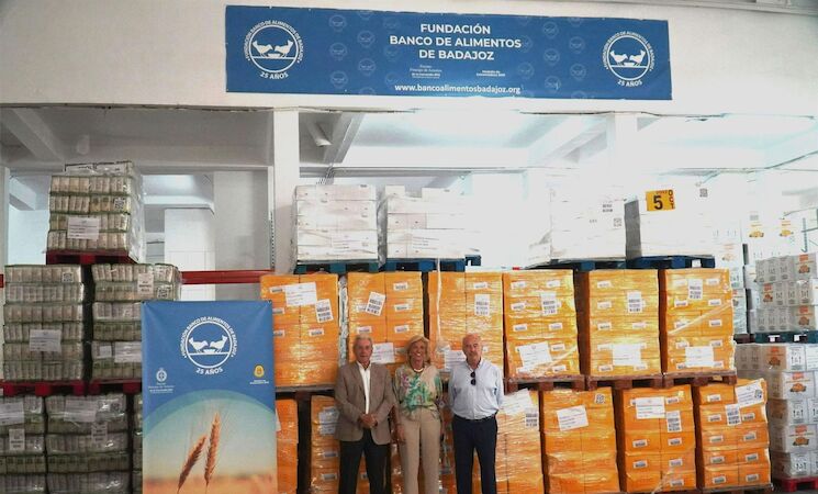 En esta ocasión, los productos de primera necesidad donados han sido 5.800 litros de aceite, 10.000 litros de caldo de pollo, 10.000 kilos de fideos y 10.000 kilos de arroz; todo ello entregado en un total de 53 palets en la sede del Banco de Alimentos de Badajoz.