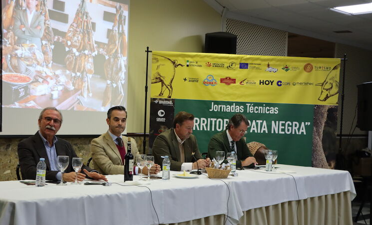 Las Denominaciones de Origen ‘Dehesa de Extremadura’, ‘Jabugo’ y ‘Los Pedroches’ fueron protagonistas de este encuentro. Sus presidentes: Francisco Javier Morato, Antonio Jesús Torralbo y Guillermo García-Palacios, respectivamente, presidieron la mesa central de las jornadas junto al director general de Agricultura y Ganadería de la Junta de Extremadura, José Manuel Benítez, aportando su visión sobre el sector en un análisis abierto moderado por José Enrique Pardo, director de COPE Extremadura.
