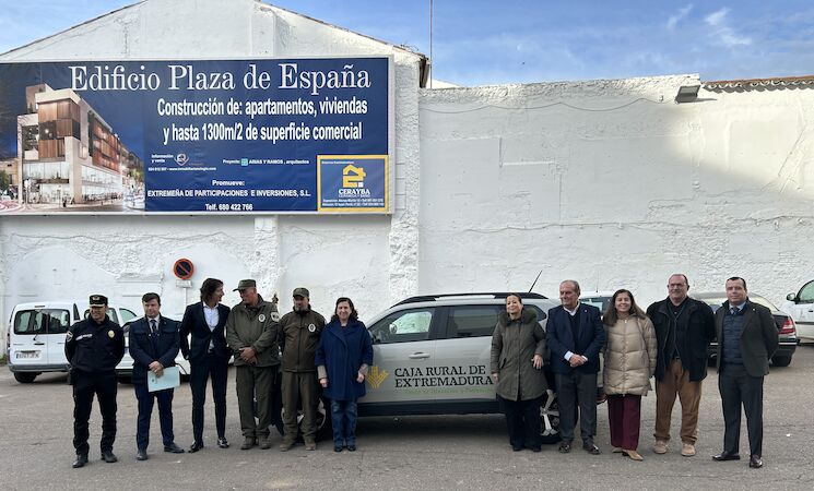Caja Rural de Extremadura y el Ayuntamiento de Don Benito han firmado este martes un convenio de colaboración mediante el cual la entidad financiera dona un vehículo para la Guardería Rural de la localidad, destinado a mejorar los servicios de vigilancia medioambiental y protección del entorno rural en el municipio.