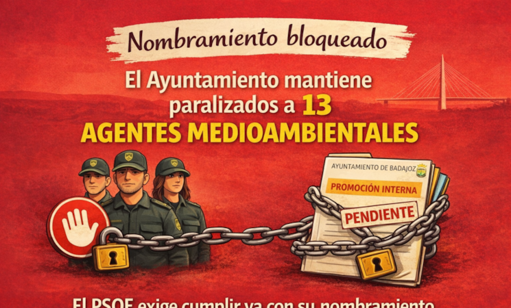 El Grupo Municipal Socialista en el Ayuntamiento de Badajoz ha reclamado este miércoles del PP que "ponga fin de inmediato al bloqueo injustificado" del nombramiento de los 13 agentes medioambientales que superaron el proceso de promoción interna.