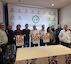 El presidente de la asociación organizadora, Javier García, la presidenta del Banco de Alimentos de Badajoz, Cristina Herrera, y el concejal de Turismo, Rubén Galea, han presentado esta actividad solidaria, en la que el donativo de 3 euros incluye un plato de migas, una loncha de jamón ibérico y bebida.