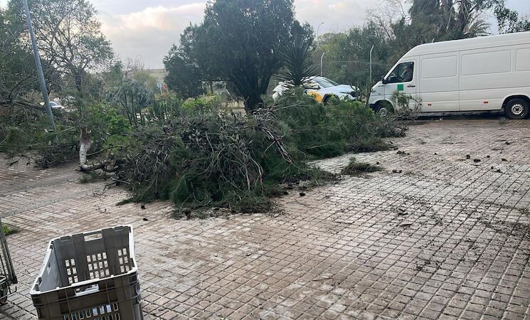 En concreto, en el caso del parque de Mérida se ha atendido más de una veintena de avisos, la mayor parte relacionados con caída de árboles y desprendimientos de fachadas, y destacan varias intervenciones en el Centro Sociosanitario, donde se han registrado árboles caídos sobre vehículos, tejados y cables eléctricos.