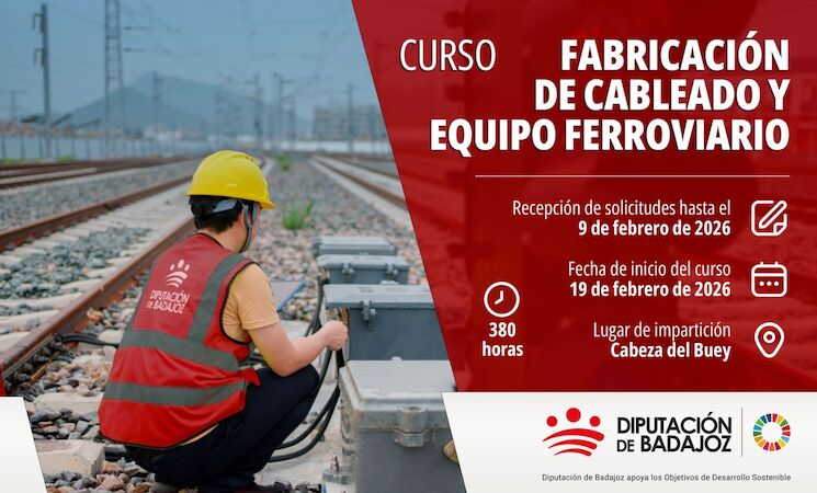 La Diputación de Badajoz impulsa en Cabeza del Buey un curso sobre fabricación de cableados y equipos ferroviarios Cartel del curso Cartel del curso - DIPUTACIÓN DE BADAJOZ BADAJOZ 2 Feb. (EUROPA PRESS) - La Diputación de Badajoz pone en marcha una nueva acción formativa totalmente gratuita y con compromiso de contratación, orientada a la capacitación técnica y a la inserción laboral en el sector industrial, uno de los ámbitos con mayor demanda de personal cualificado en la actualidad. La iniciativa, desarrollada desde el área de Formación y Capacitación para el Empleo, está dirigida a personas desempleadas y ocupadas de la provincia, y se desarrollará en Cabeza del Buey (Badajoz). La formación, de carácter presencial y eminentemente práctico, permitirá al alumnado adquirir competencias en procesos industriales vinculados a la fabricación de cableados y equipos ferroviarios, abarcando todo el ciclo productivo, en concreto, desde la recepción de materiales hasta la verificación final del producto, siempre bajo estrictos criterios de calidad y seguridad. El curso se estructura en distintos módulos prácticos que incluyen logística y aprovisionamiento industrial, cables y conductores eléctricos, realización de cableados y mazos eléctricos, engastado de terminales y montaje de conectores, ensamblaje de bienes de equipo industriales, ensayos eléctricos como continuidad, aislamiento y rigidez dieléctrica y control de calidad en entornos industriales. La acción formativa se desarrollará en la localidad pacense de Cabeza del Buey, contará con una duración total de 380 horas, se impartirá en modalidad presencial y dispone de 12 plazas. Tendrán prioridad las personas desempleadas inscritas como demandantes de empleo. El plazo de solicitud permanecerá abierto hasta el 9 de febrero, mientras que el inicio del curso está previsto para el 19 de febrero. Este curso gratuito con compromiso de contratación está financiado por la Diputación de Badajoz y se alinea con los Objetivos de Desarrollo Sostenible, contribuyendo al fomento del empleo de calidad y al fortalecimiento del tejido industrial de la provincia. Las personas interesadas deberán presentar su solicitud junto al DNI, vida laboral o currículum y certificado de empadronamiento antes del 9 de febrero. La documentación deberá registrarse mediante el modelo de solicitud correspondiente a través del ayuntamiento de residencia, el Sistema de Interconexión de Registros o ventanilla única.