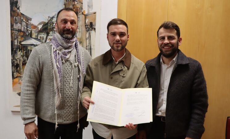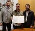 El alcalde de Jerez de los Caballeros, Raúl Gordillo, junto con el primer teniente de alcalde y portavoz del grupo municipal del PP, Mario Méndez y el portavoz del grupo municipal de Unidas por Jerez, Juan Carlos Santana, rubricaron el acuerdo.