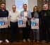 El diputado provincial, Ricardo Cabezas, el alcalde de Alburquerque, Manuel Luis Gutiérrez, el presidente de ADIFISA, Francisco José Pámpano, y el organizador del IV Corte de jamón solidario, Moisés Monroy, han presentado el evento.