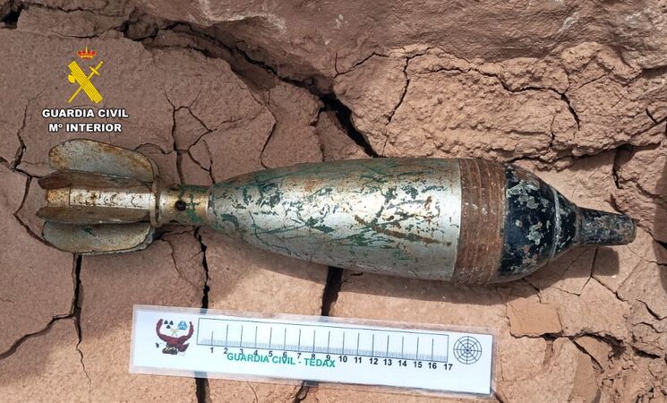 El artefacto del calibre 81 mm fue hallado cuando se realizaban labores agrícolas en el terreno, según detalla la Benemérita.