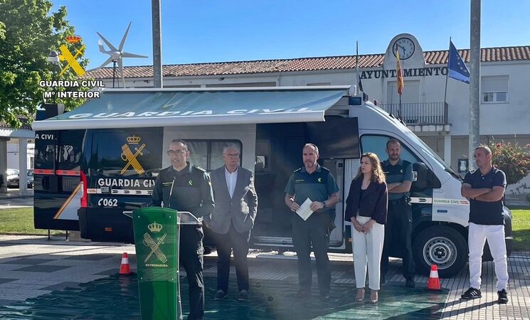 La Guardia Civil presenta la nueva Oficina Móvil de Atención a la Ciudadanía (OMAC), que estará operativa en la provincia de Badajoz.
