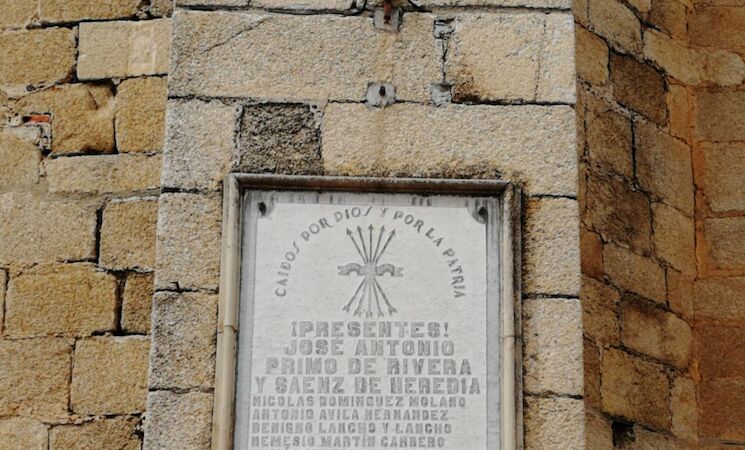 En concreto, planteada en "legal forma" ante el Ayuntamiento de Cañaveral, la solicitud se refiere a una placa franquista que "aún permanece" en la localidad, presidida por el escudo del partido Falange española (yugo y flechas), con la leyenda con el líder fascista José Antonio Primo de Rivera ubicada en la plaza del pueblo, en la fachada de la iglesia.