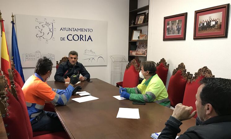 El Ayuntamiento de Coria (Cáceres), a través de los servicios de limpieza y jardinería y la empresa adjudicataria de la limpieza, Limycon S.L., han comenzado este miércoles a realizar labores de limpieza y desinfección en las zonas más concurridas de la ciudad de Coria.