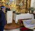 De este modo, Javier Gutiérrez, presidente de los rotarios cacereños, ha entregado el manto a Juan Carlos Fernández, que ha sido el encargado de dárselo a la camarera, que es la que custodia todos los mantos de la Patrona cacereña.
