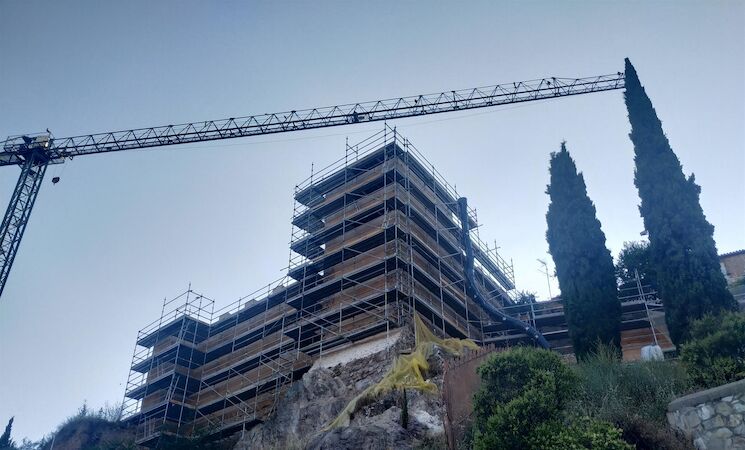 Concluida esa parte de la obra, ya se está instalando el andamio para empezar a trabajar en el jardín de la Judería vieja para, desde ahí, afrontar la rehabilitación del otro lado del Baluarte de los Pozos.
