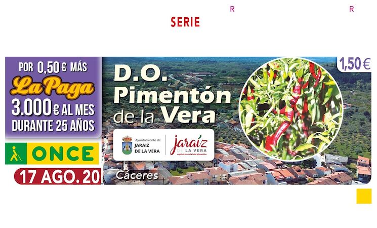 La Denominación de Origen Pimentón de La Vera ilustrará el cupón de la ONCE del próximo lunes, 17 de agosto, que estará impreso en 5,5 millones de cupones.