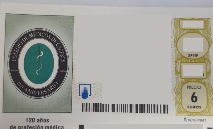 Los décimos del sorteo de Lotería Nacional del próximo sábado, 5 de septiembre, llevarán la imagen del Colegio de Médicos de Cáceres, con motivo de la conmemoración de su 120 aniversario durante este año.