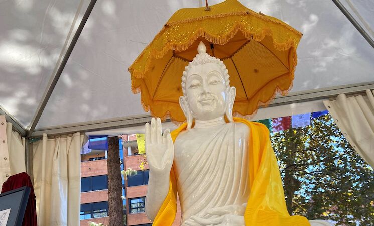 Ahora, una vez concluidas tanto la ceremonia civil como la religiosa para dar la bienvenida oficial a la imagen, la estatua del Buda Mahar Karuna se quedará unos días más en Valencia antes de emprender su viaje hasta Cáceres.