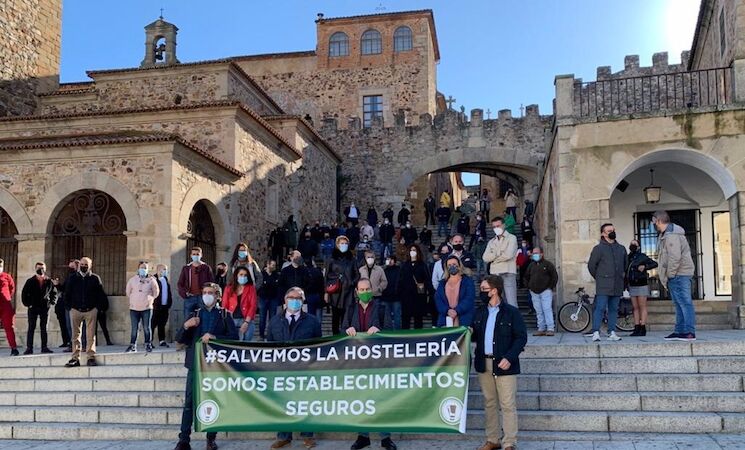 Unos ochenta hosteleros de la provincia de Cáceres se han concentrado este miércoles en la Plaza Mayor de la capital cacereña para reivindicar la seguridad de sus establecimientos frente a la Covid-19, y pedir a los usuarios que "no tengan miedo" a entrar en ellos, al tiempo que solicitan la creación de un comité científico o "foro de expertos" para "dar una solución" a esta situación "global".