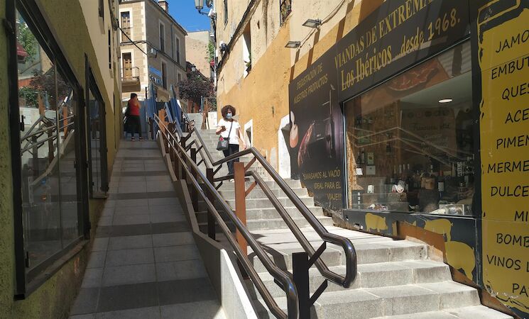 El Ayuntamiento de Cáceres acometerá en este 2021 "pequeñas actuaciones" en la calle Alzapiernas, como la corrección de una rampa que será sustituida por un par de escalones, para cumplir con la normativa de accesibilidad pero "no se levantará" de nuevo la vía, y se complementará con un itinerario accesible alternativo con la construcción de una plataforma única en la calle Parras.