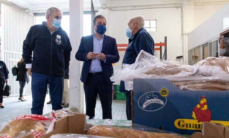 Durante su visita, el jefe del Ejecutivo regional ha recorrido las instalaciones donde ha conocido el stock de alimentos que actualmente está en su almacén. También ha participado en la visita la alcaldesa en funciones de Cáceres, María José Pulido.