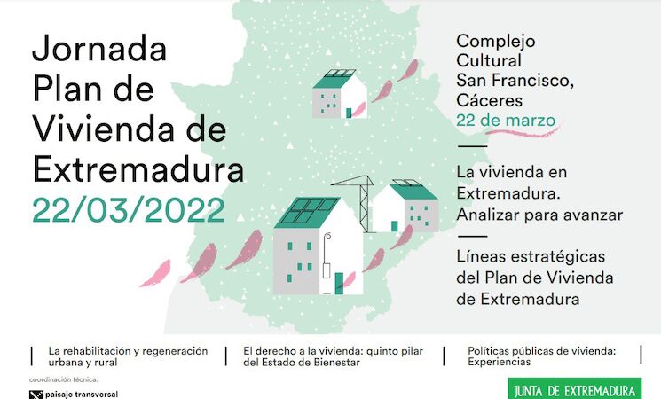 Esta jornada, organizada por la Consejería de Movilidad, Transporte y Vivienda, se celebrará en el marco de la elaboración del Plan de Vivienda de Extremadura, con el fin de profundizar en algunas temáticas en materia de vivienda y exponer las principales líneas estratégicas del Plan.