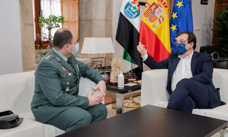 El presidente de la Junta de Extremadura, Guillermo Fernández Vara, se ha reunido con el jefe de la Comandancia de la Guardia Civil de Cáceres, el teniente coronel Rafael Roldán Parra.