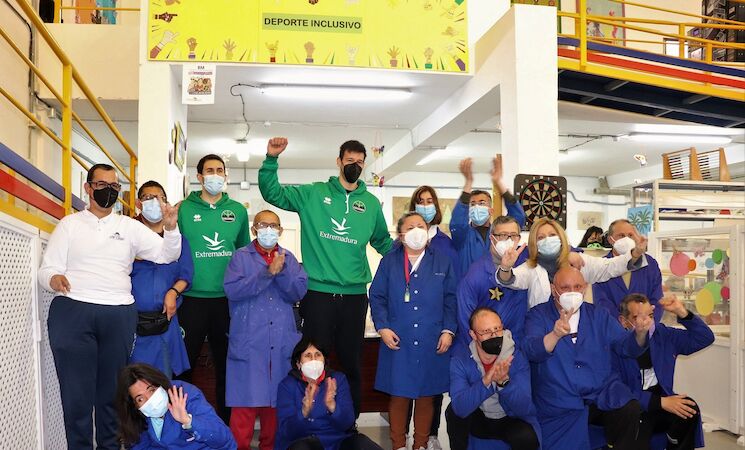 Los usuarios del centro ocupacional Novaforma, ubicado en el polígono Las Capellanías de Cáceres, han recibido la visita de dos jugadores de la plantilla del Cáceres Ciudad del Baloncesto, Manu Rodríguez y Duje Dukan, a través de un proyecto inclusivo que desarrolla la Fundación Valhondo.