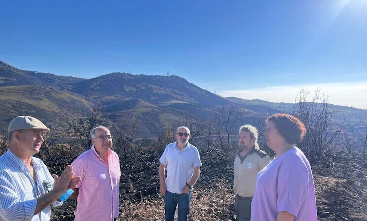 La consejera de Agricultura, Desarrollo Rural, Población y Territorio, Begoña García Bernal, ha visitado este miércoles la zona afectada por el incendio de Casas de Miravete y se ha reunido con los alcaldes de los municipios afectados.