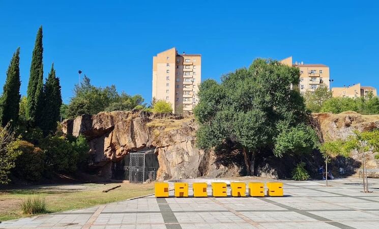 El segundo juego de las réplicas de las letras icónicas de la ciudad, concretamente el de color ocre o amarillo, está en su ubicación definitiva en la explanada de la Cueva de Maltravieso, a donde ha sido trasladada desde la Plaza Mayor, lugar en el que ha estado junto a los otros 4 juegos de diferentes colores, uno de los cuales, concretamente el verde, se encuentra ya definitivamente en el Paseo Alto.