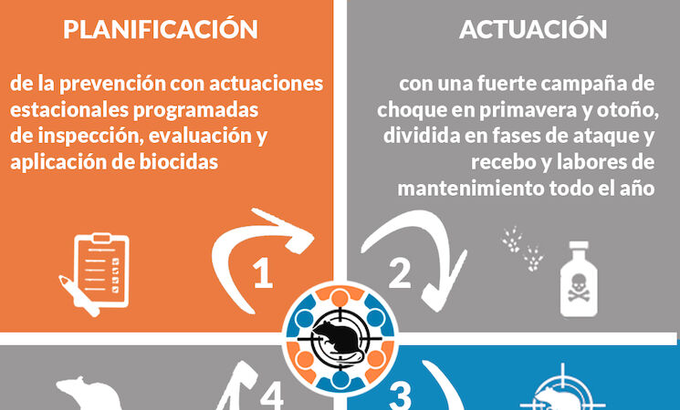 En concreto, el concejal de Servicios Públicos, Andrés Licerán, ha explicado que "el equipo de gestión de plagas, que centra su trabajo durante todo el año en las 3D (desinfección, desinsectación y desratización), divide sus labores para el control de exceso de roedores en un ciclo de 4 fases: planificación, actuación, detección y atención".