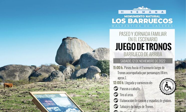 El escenario de grabación de Juego de Tronos en el Barrueco de Arriba, en Malpartida de Cáceres, será testigo este sábado, 12 de noviembre, de una jornada familiar con distintas actividades relacionadas con la serie televisiva, dentro del programa de celebración de la II Semana del Monumento Natural Los Barruecos.