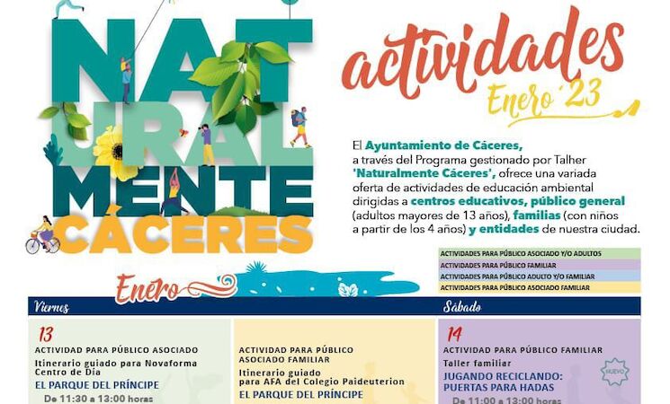 El Ayuntamiento de Cáceres, a través del programa de educación ambiental gestionado por Talher 'Naturalmente Cáceres', continúa sus actividades de educación ambiental en enero.