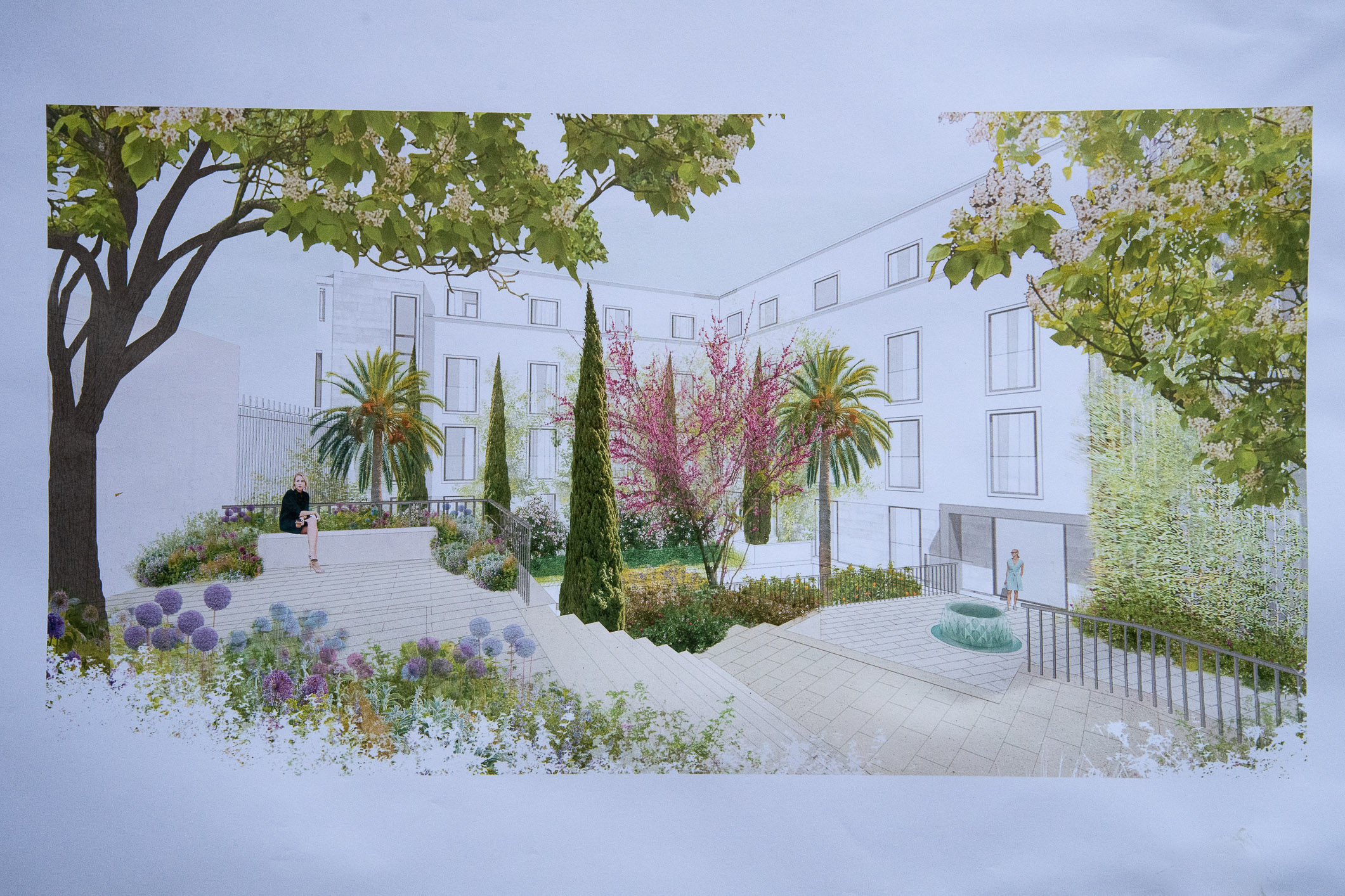 El jardín se adecuará como una gran zona verde con un proyecto paisajístico abierto al público para acceder al restaurante y una gran verja que ofrecerá una continuidad con la ciudad. Además, se firmará un convenio urbanístico con el ayuntamiento para demoler una vivienda en la calle Zapatería, incluida también en el volumen del proyecto, para ampliar la vía y recuperar el ancho original. Palazuelo ha apuntado que ese inmueble "no debería estar ahí".