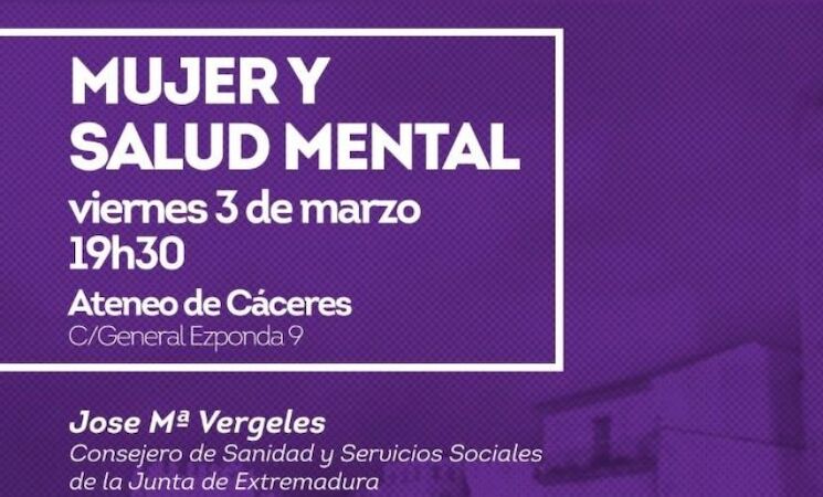 Así pues, las jornadas 'Mujer y salud mental' tendrán lugar este viernes, 3 de marzo, a las 19:30 horas, en el Ateneo de Cáceres, y estarán moderadas por el psiquiatra Ignacio Torres. Participarán el consejero de Sanidad y Servicios Sociales, José María Vergeles; la jefa de gestión de programas asistenciales del Sepad, Soraya Masa; la responsable técnica de Feafes Salud Mental Extremadura, Inmaculada Valero, y el candidato a la alcaldía de Cáceres, Luis Salaya.