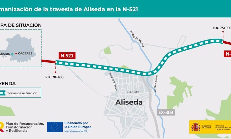 El Ministerio de Transportes, Movilidad y Agenda Urbana (Mitma) ha aprobado de forma provisional el proyecto de trazado de humanización de la carretera N-521 a su paso por Aliseda, en la provincia de Cáceres.